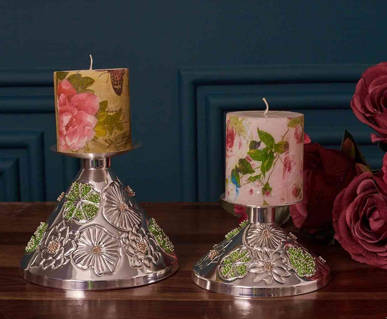 Green bead candle stand